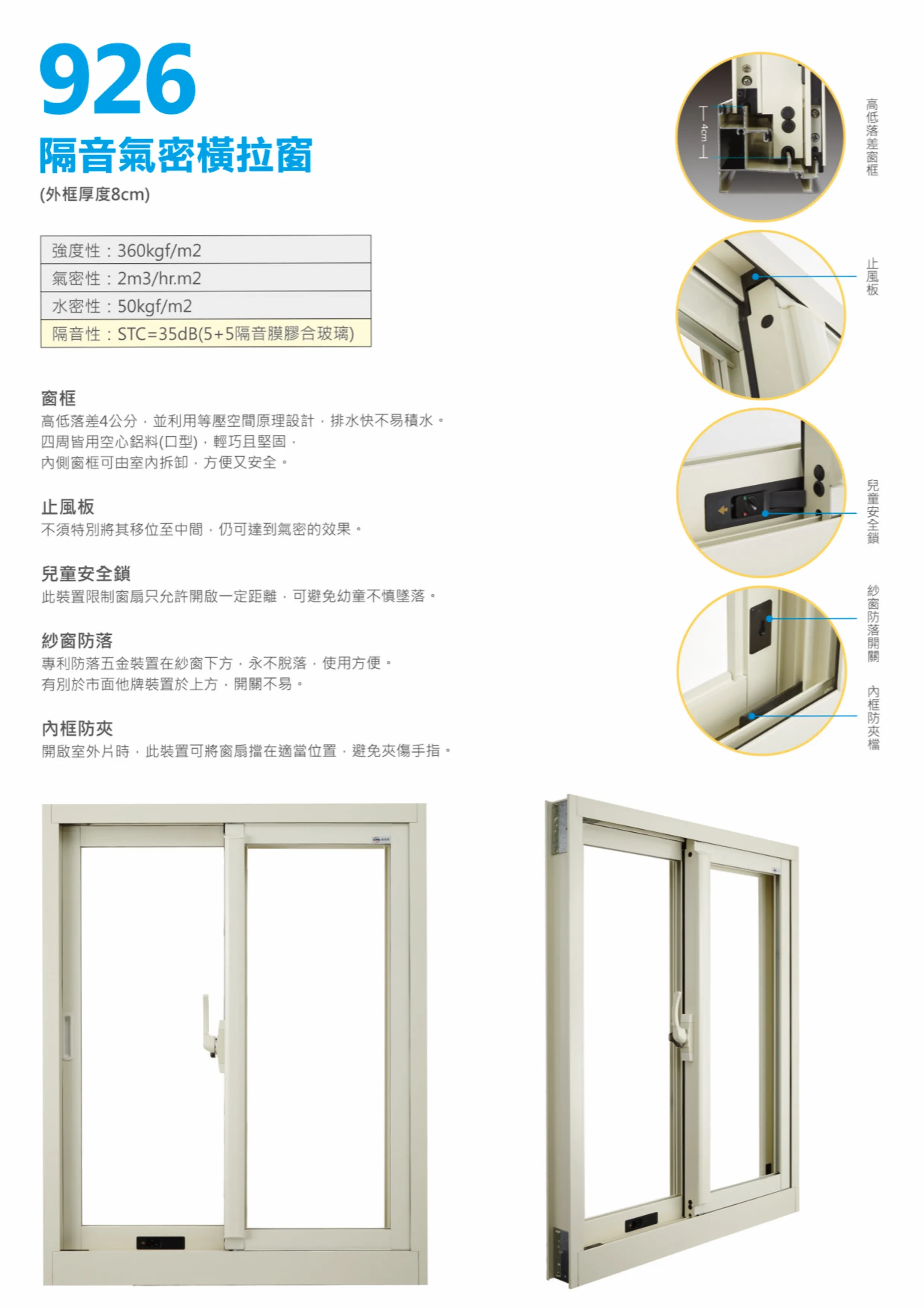 四周皆用空心鋁料,輕巧且堅固,內側窗框可由室內拆卸,方便又安全。